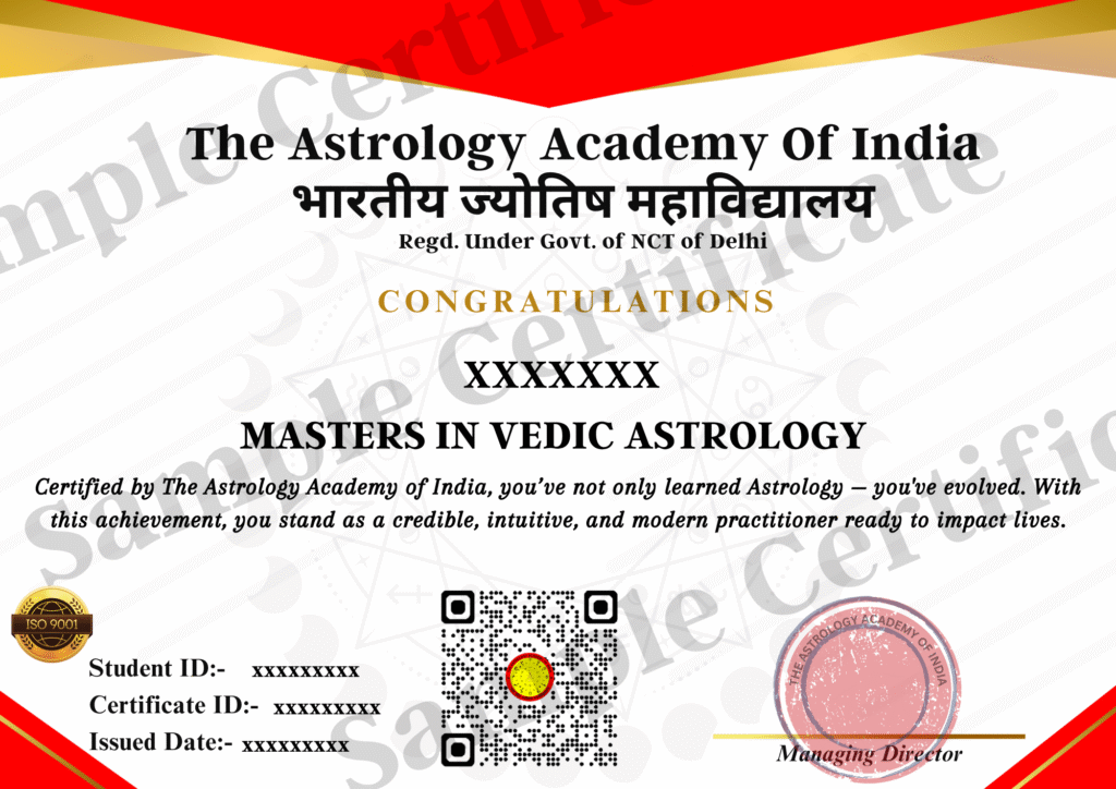 Receive a professional, recognised certificate from The Astrology Academy of India.